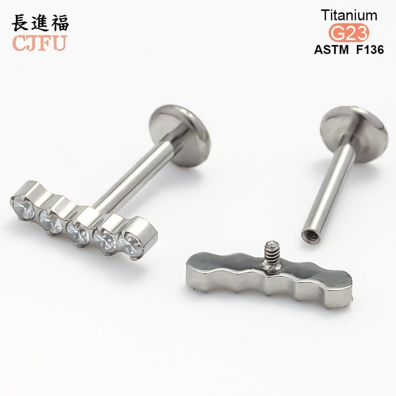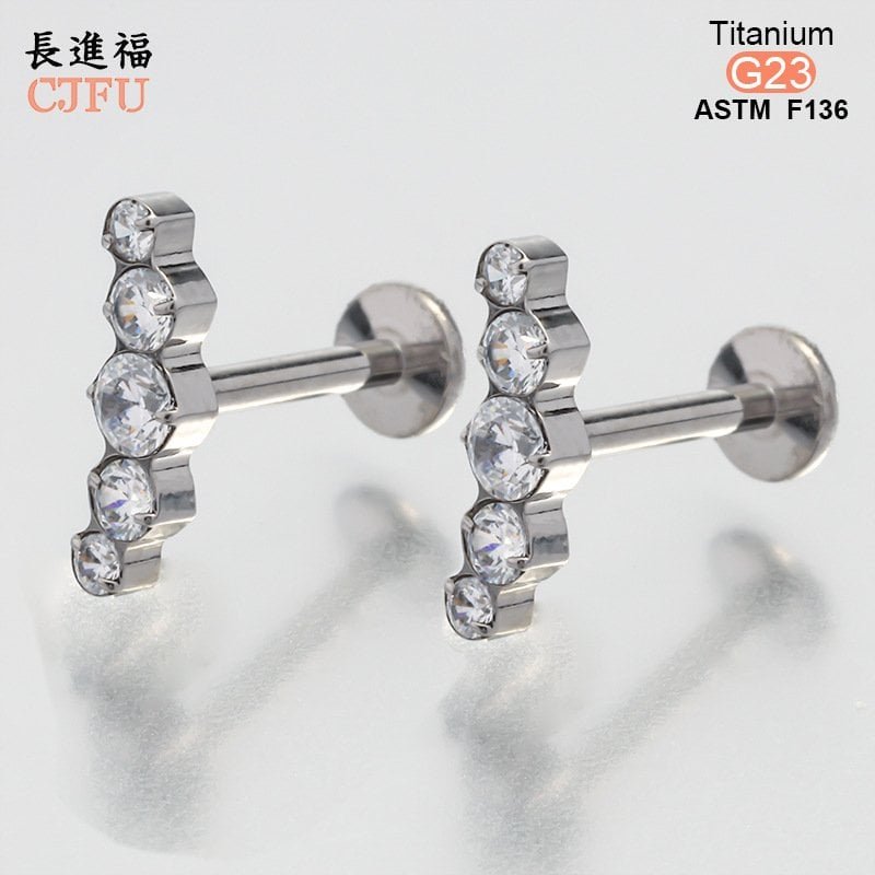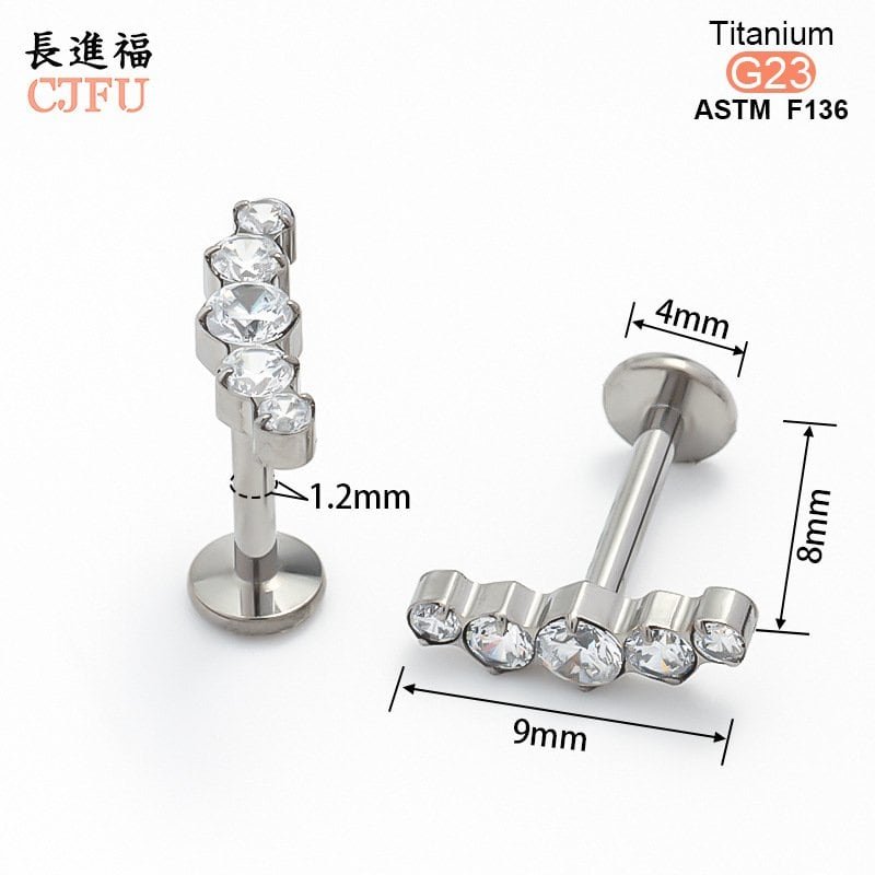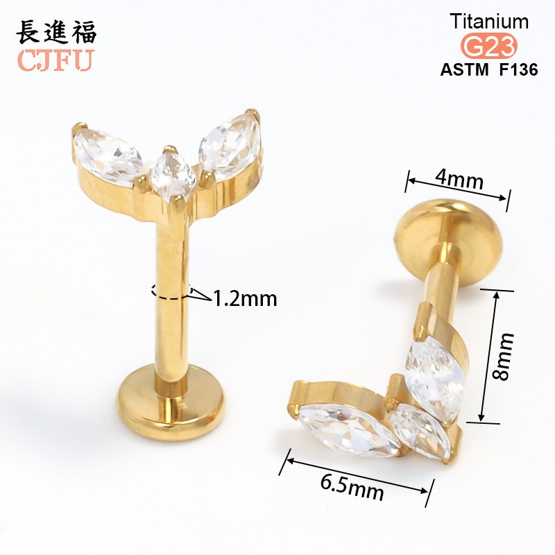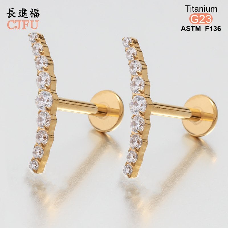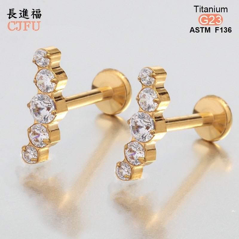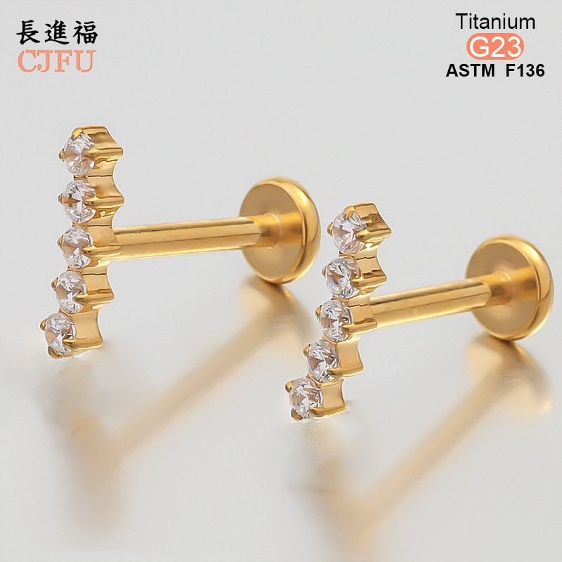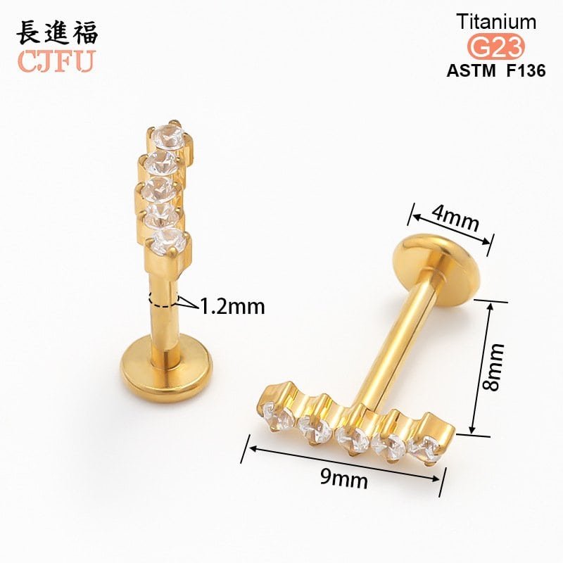 An essential choice for high-end piercing studios. This ASTM F136 compliant titanium labret features a premium gold PVD coating and is set with a sparkling, clear zirconia gemstone. With its internally threaded design and comfortable flat back, it serves as an ideal medical-grade solution for helix, tragus, and lip piercings.